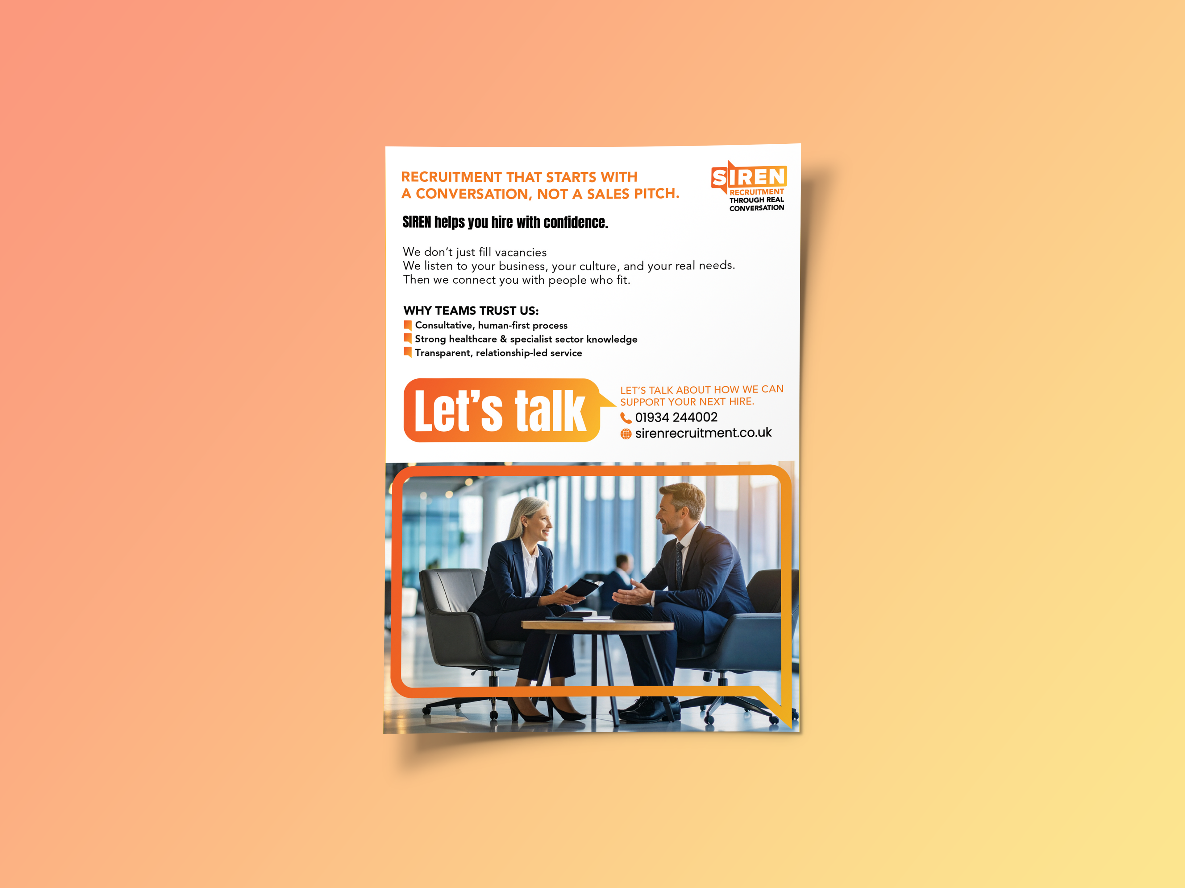 I created a complete brand identity for SIREN Recruitment, an agency based in Cardiff and Bristol specialising in people-first, conversation-led recruitment — particularly in the healthcare and specialist sectors.